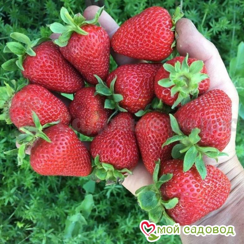 Плоды насыщенного, ярко-красного цвета. Форма конусовидная, вытянутая. Мякоть яркая, красная. Ягоды упругие, сочные. Вкус выраженный и яркий. Вес плодов достигает 35 грамм. Осенью размер плодов уменьшается. Ягоды имеют довольно плотную мякоть, хорошо переносят продолжительную транспортировку.
